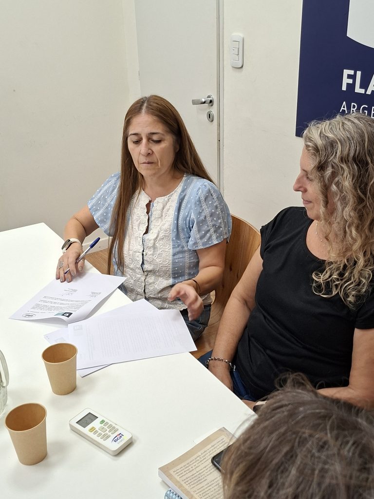 El encuentro tuvo lugar en la sede de FLACSO Argentina y contó con la presencia de Valentina Delich, directora de FLACSO Argentina, Perla Zelmanovich, coordinadora del Programa Políticas, Lenguajes y Subjetividades en Educación; Patricia Redondo, coordinadora del Programa Infancia, Educación y Pedagogía y Magali Grinberg, Sec. de Cultura y Capacitación de la Asociación de Docentes de Educación Física (ADEF) y Myriam De Blas, Sec. General Adjunta de la Asociación de Docentes de Educación Física (ADEF)