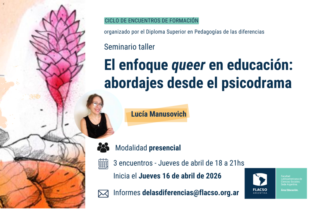 Este seminario–taller propone un recorrido intensivo que articula teoría queer, pedagogías feministas y psicodrama como dispositivo grupal de análisis. La propuesta se inscribe en el trabajo desarrollado en el marco de la FLACSO Argentina, particularmente en la Diplomatura Superior en Pedagogías de las Diferencias, donde se viene problematizando críticamente la noción de normalidad en educación.